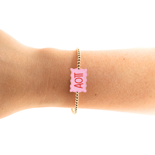 Alpha Omicron Pi Block Bracelet on Color: Standard 6.75 Inch