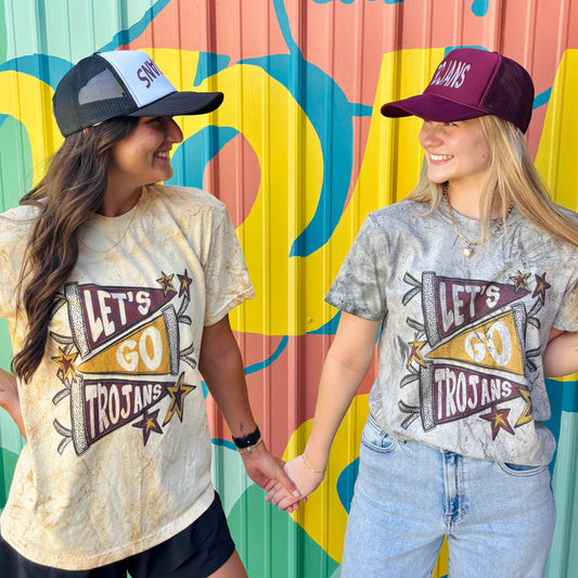 Trojans Pennants Acid Wash Comfort Colors Tee- Gold