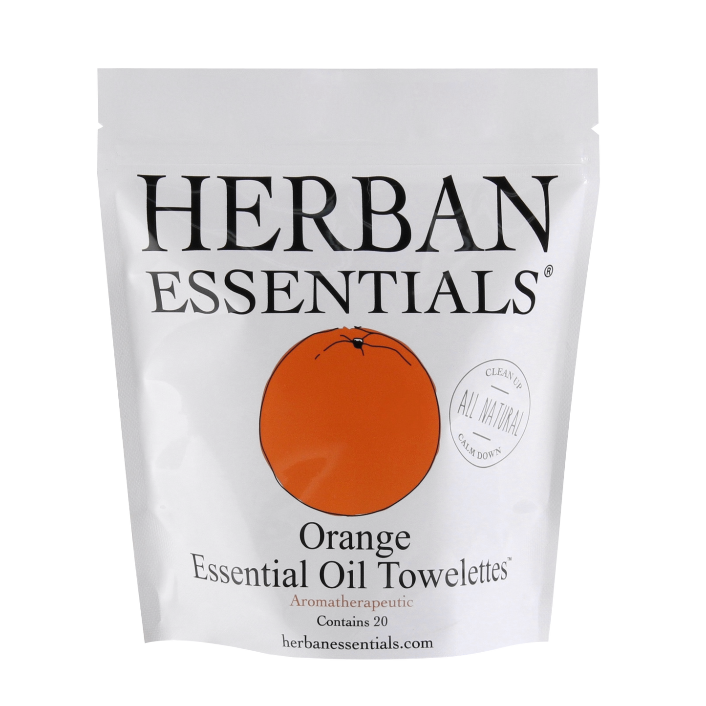Herban Essentials essential oil towelettes are made with the highest quality, pure orange essential oil, which not only makes them smell amazing, but makes them naturally uplifting and rejuvenating as well. Orange essential oil is naturally uplifting.