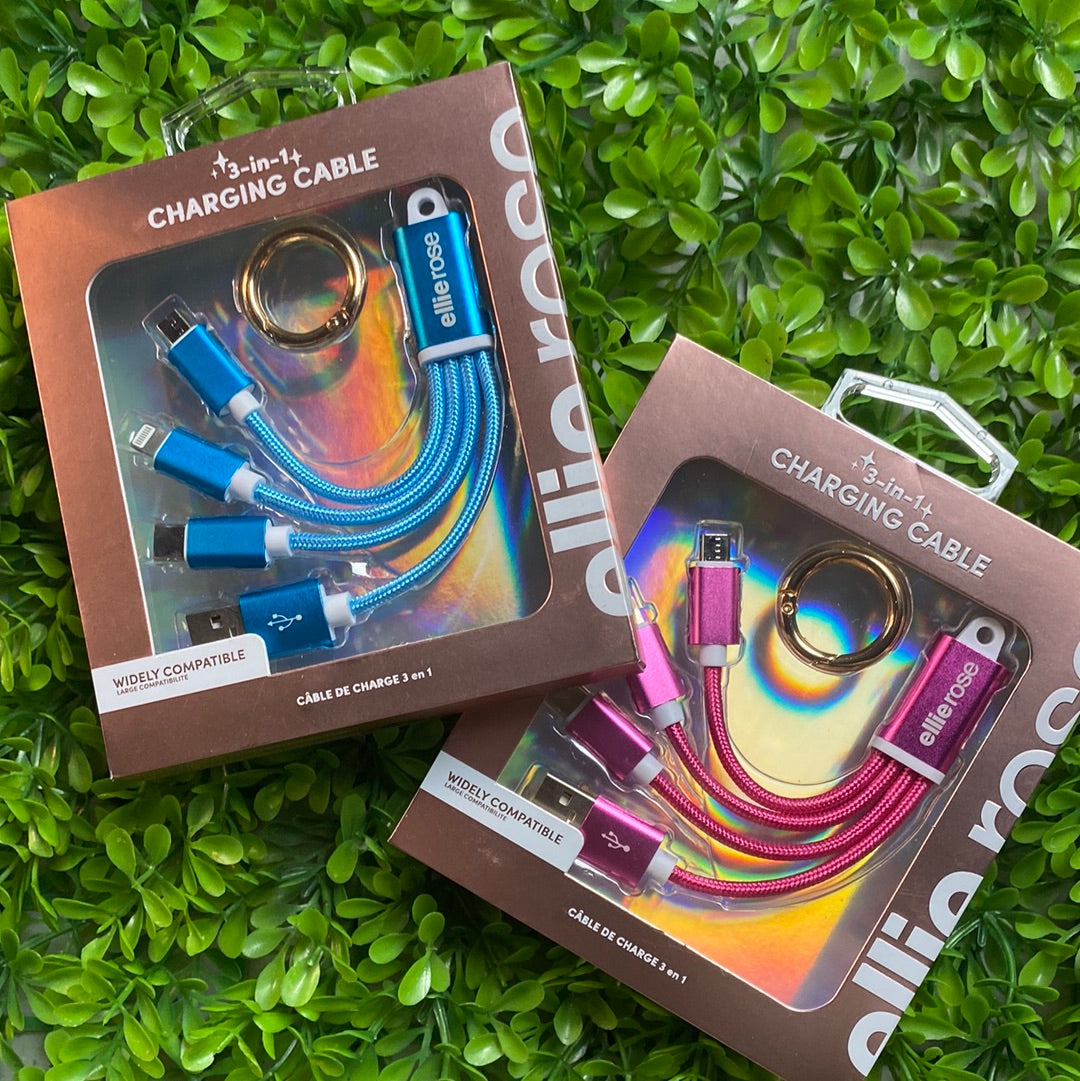 Includes lightning, USB-C, and micro-USB connectors with a USB-A end. Compatible with a wide variety of devices. Clip to your handbag, gym bag, or keys.