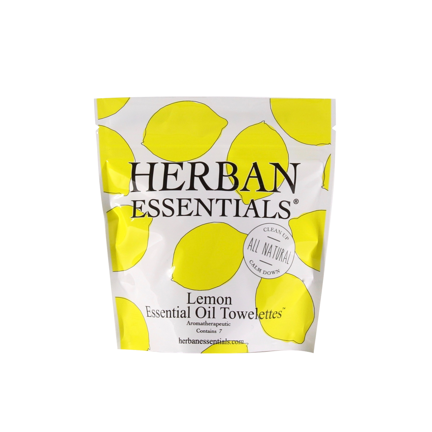Herban Essentials essential oil towelettes are made with the highest quality, pure lemon essential oil, which not only makes them smell amazing, but makes them naturally uplifting and rejuvenating as well. Lemon essential oil is naturally refreshing.