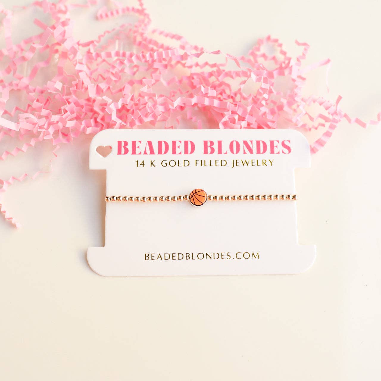 Basketball beaded bracelet. Our signature 14 K gold filled beaded bracelets with custom made beads.
