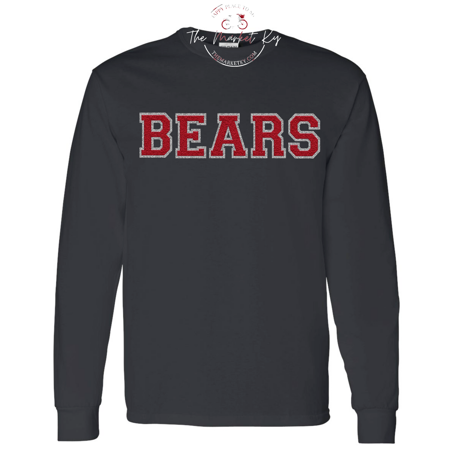 Bears Faux Chenille Long Sleeve Tee (Youth & Adult)- Black