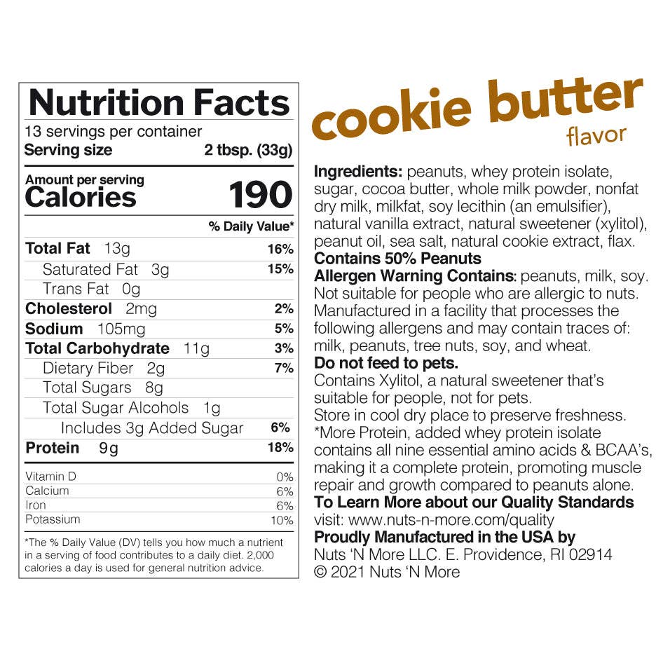 Our authentic Belgium windmill style cookie butter, with a homemade biscuit flavor, is made from only the freshest peanuts, genuine spices and packed with whey protein isolate and flax for added protein and Omega 3’s. With a real Gingerbread Belgium Cookie taste, make no mistake, it's far from the fructose and hydrogenated oil loaded counterpart on the market.