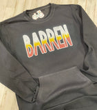 Crewneck sweatshirt features kangaroo pockets in the front. Designs are our original designs we print on each.