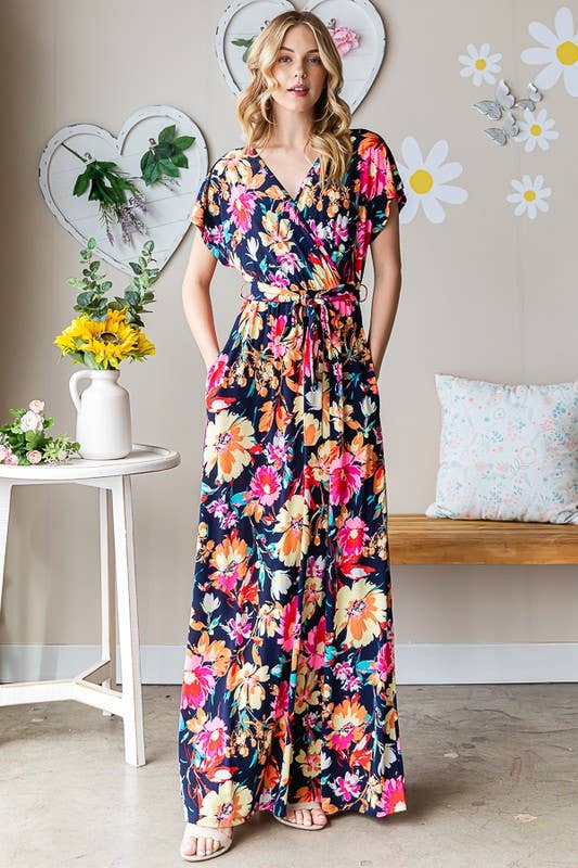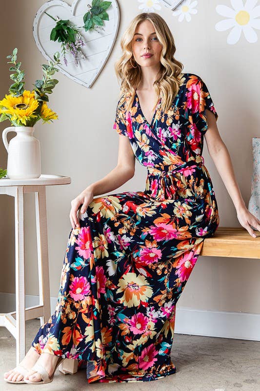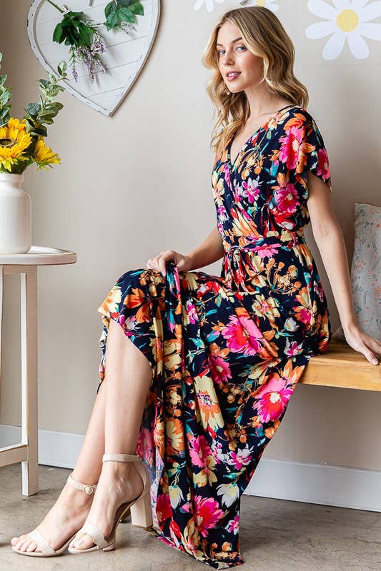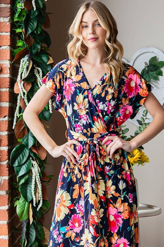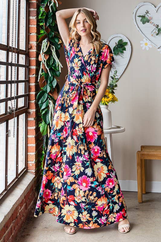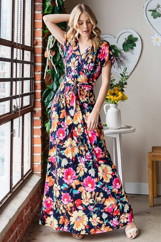 FLORAL MAXI WRAP DRESS/ NAVY MULTI