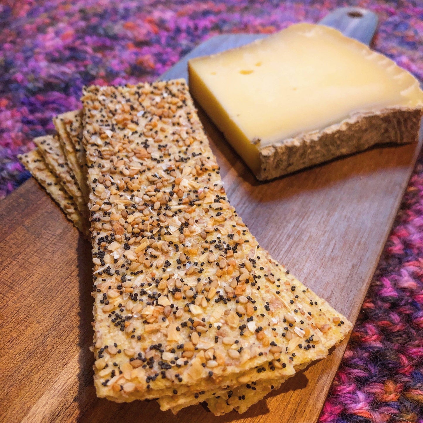 Our nod to our home, Brooklyn, NY ... Sunday mornings, the smell of fresh bagels, coffee brewing, all in a cracker. Our signature cornmeal crunch topped with sesame, poppy, garlic, onions, and sea salt, make these crackers EVERYTHING GOOD. Try these with cream cheese, smoked fish, hummus, salsa, dips, honey, or butter. *