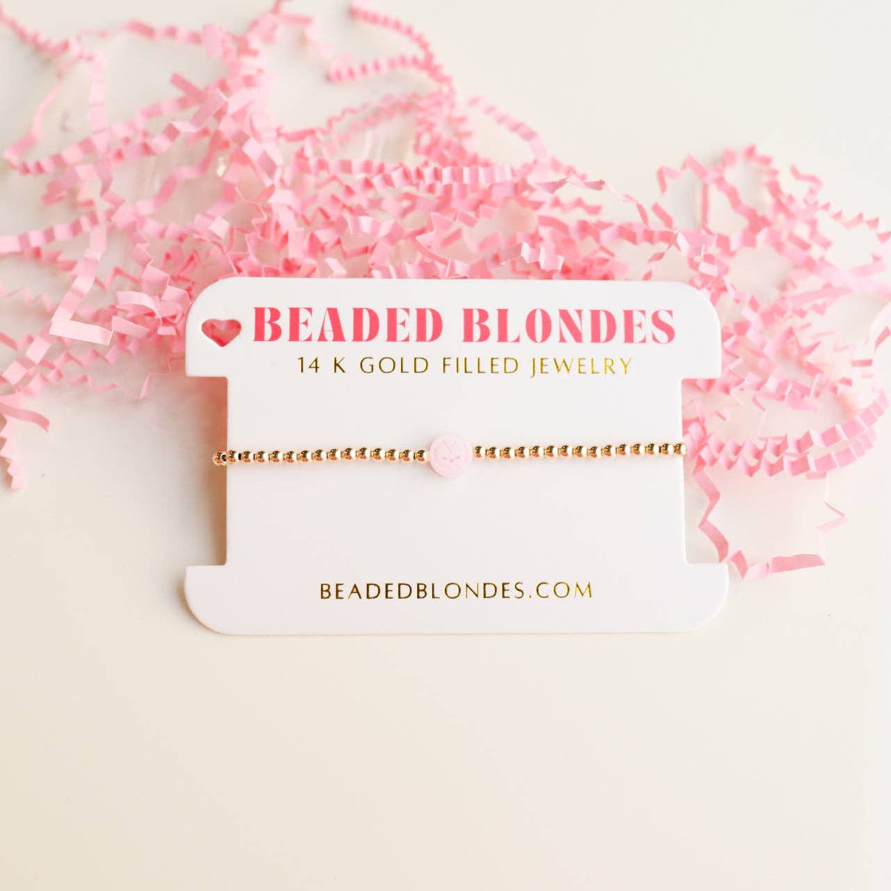 Golf club beaded bracelet. Our signature 14 K gold filled beaded bracelets with custom made beads.