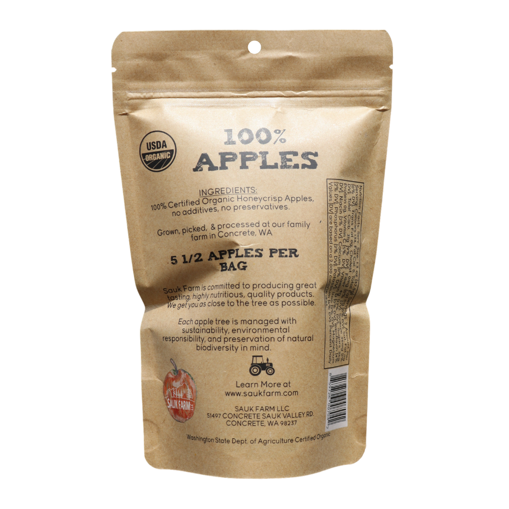 Delicious, crispy, and sweet. Our apple chips allow you to enjoy all the great flavors of apples, any time of the day. Made from 100% organic honeycrisp apples, with no sugar, no additives, and no preservatives. Shelf Stable, Seal after opening.