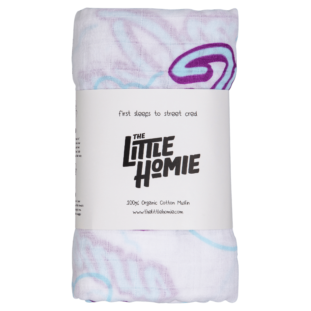 Printed on 100% organic cotton, this Swaddle can be used as a baby blanket, pram cover, breastfeeding cover or swaddle to keep your Little Homie snug & stylish.