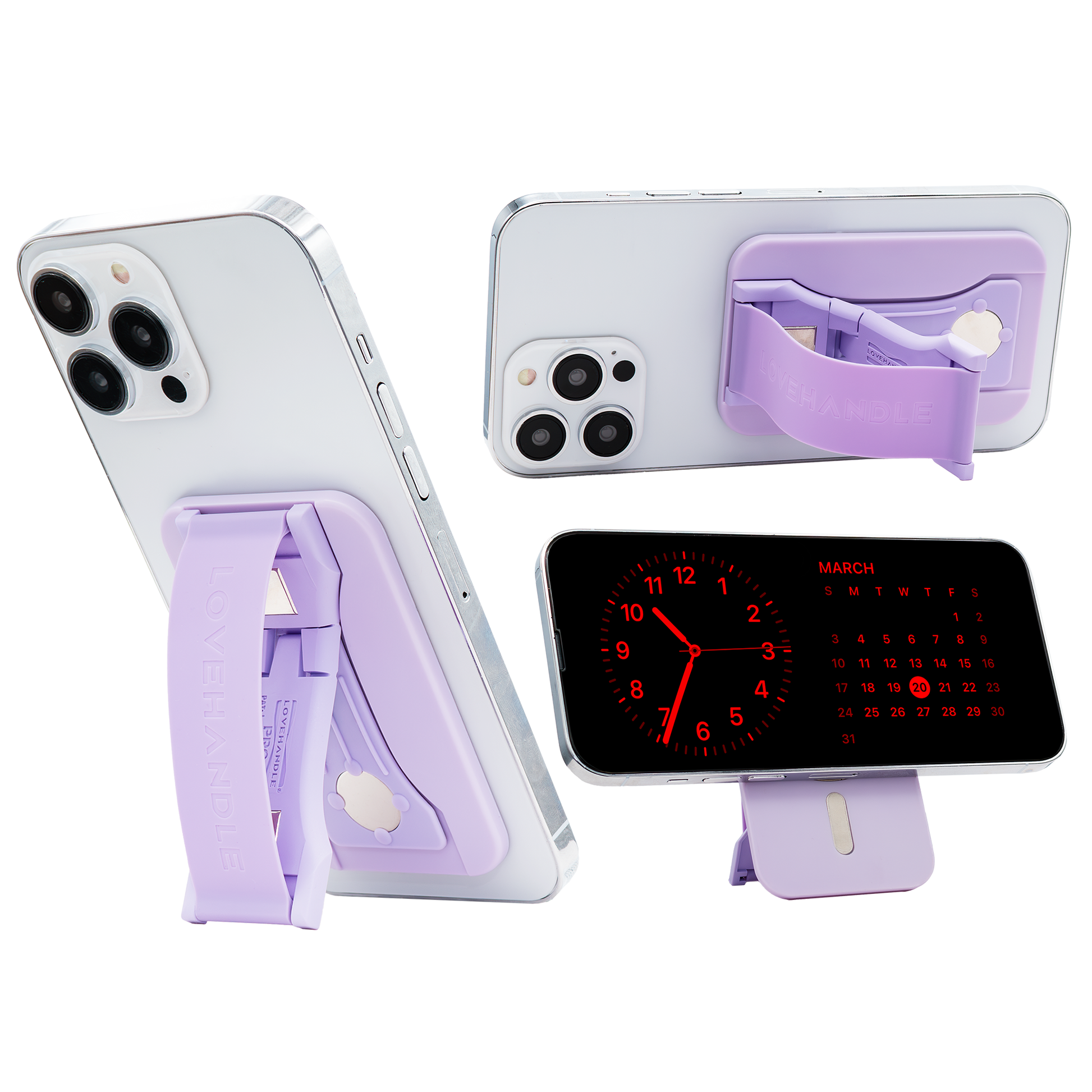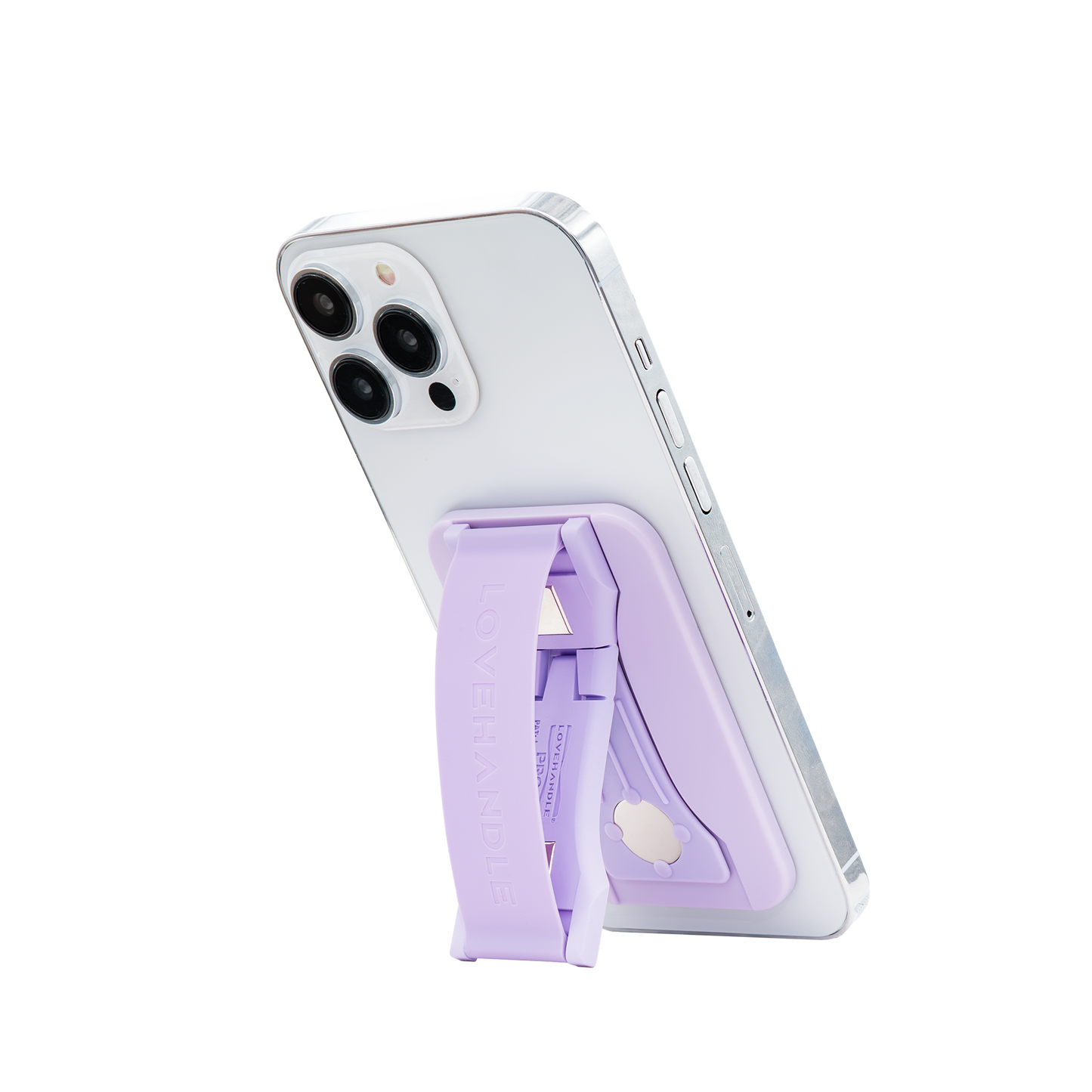 The magnetic LoveHandle MagSafe® Adapter features Easy on. Easy off. Easy charge. LoveHandle MagSafe® allows you to enjoy a comfortable grip, instant kickstand, magnetic mounting to metal surfaces, with the added convenience of removability for wireless charging access.