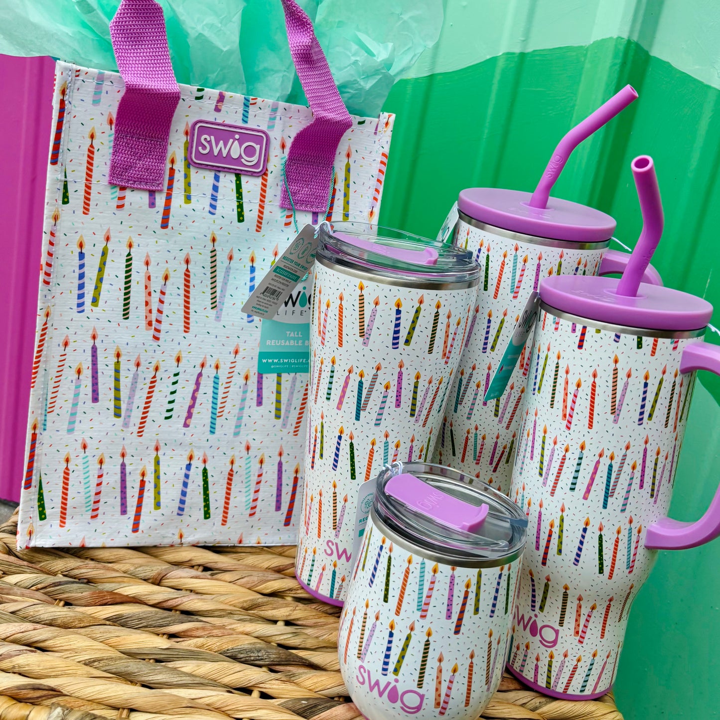 Swig Life's Reusable Bags are perfect for all of life's celebrations; birthdays, weddings, and holiday parties, and are a go-to favorite for everyday use. This tall reusable bag is ideal for medium-sized gifts, like slippers or gloves and scarves, and can be used to gift our mega mugs and accessories. Pack this for girl's night; it fits two wine bottles and two stemless wine cups!