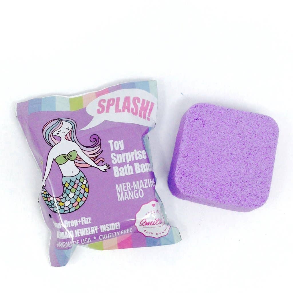 We love surprises as much as we love bath bombs. So we combined the two in our all new Bath Bomb Blind bags that feature a small toy packed inside one of our signature sweet bath bombs! Each Mer-mazing Mango blind bag contains an assorted sea ring and weighs approximately 5 oz.