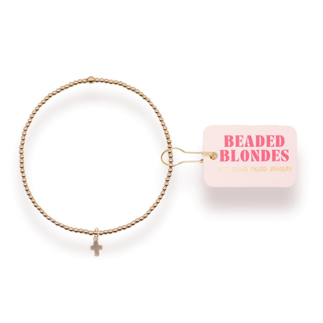 Beaded stretch bracelet with mini cross charm. Kids size 5.5 Inch