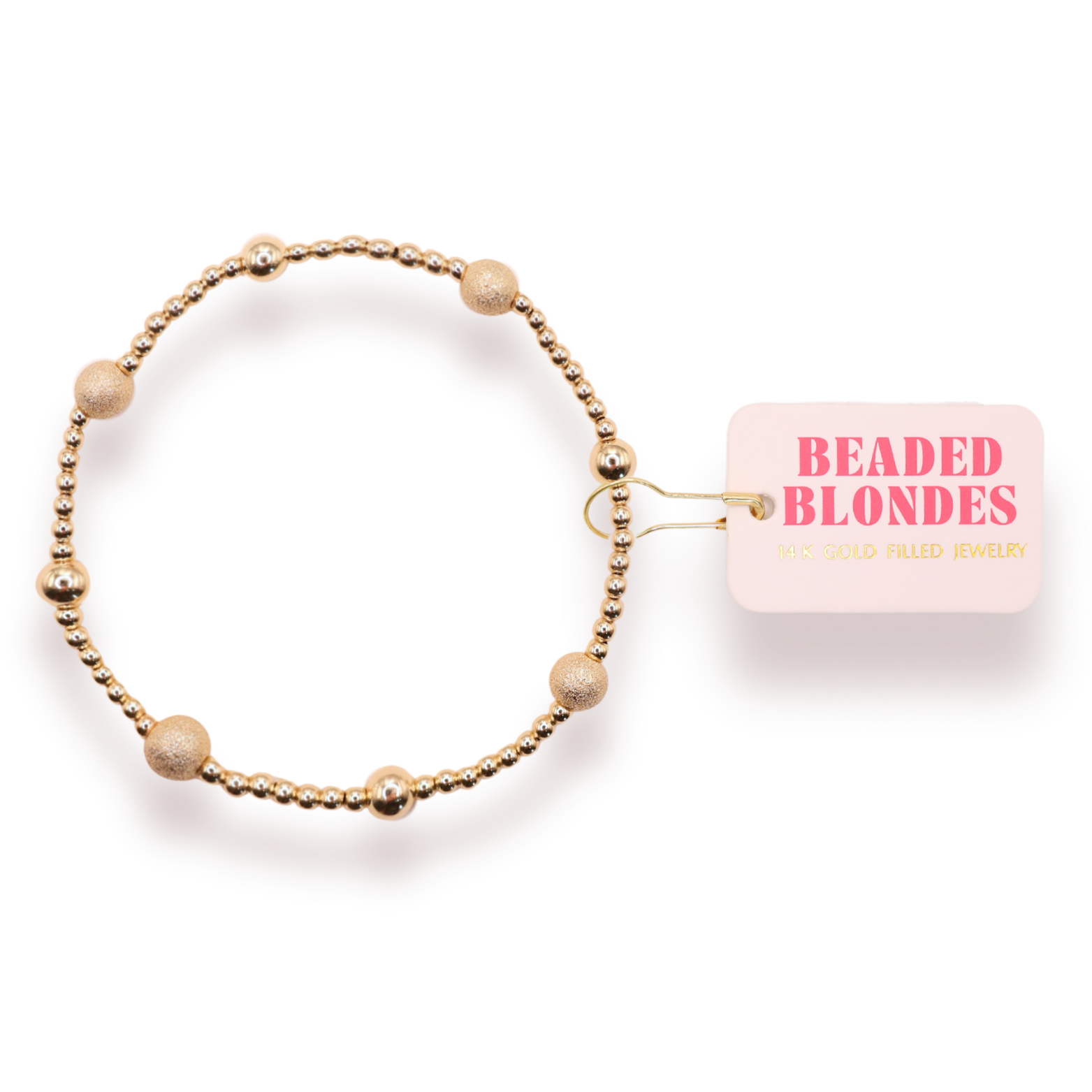 Part of the Beaded Blondes Holiday Collection. Our Noelle Stardust Bracelet is 2mm with alternating 5MM gold & 5MM stardust beads