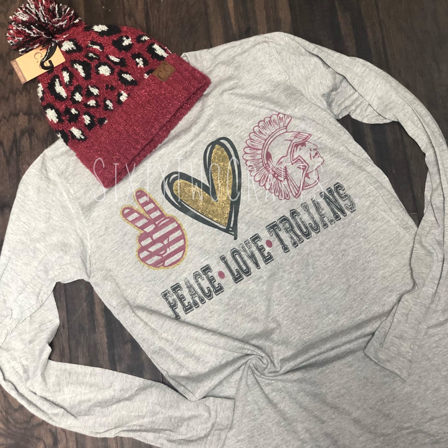 You'll love our mixed media Peace Love shirts!The hearts are a non shedding glitter with a subbed design.