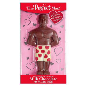 Here is your perfect man bite size for Valentines Day! What's better than that. An adorable chocolate formed man with cute heart boxers on. And the ripped chest that he is showing off isn't too shabby either. Grab a case of The Perfect Man for your special someone, gag gift or your office Valentine's! The Perfect Man is the perfect Valentine's Candy! *