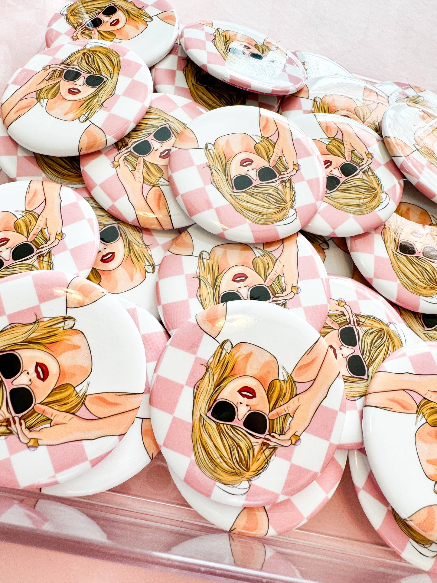 Checker Taylor 2.25" Button. Professionally produced with high quality colors and vibrancy.