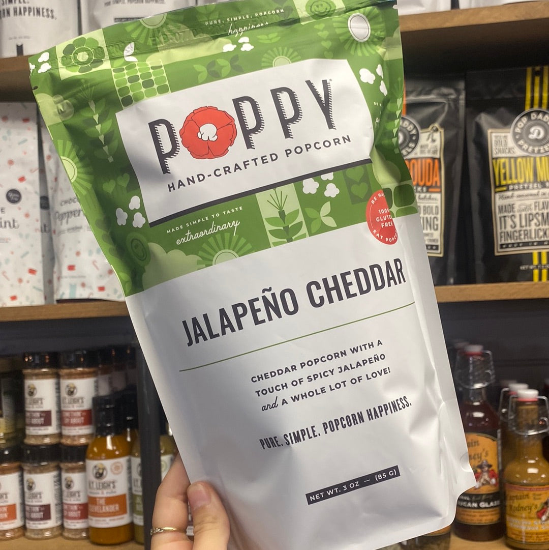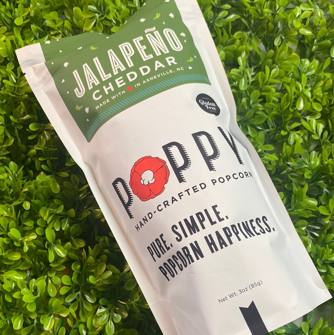 Cheddar popcorn with a touch of spicy jalapeño and a whole lot of love!