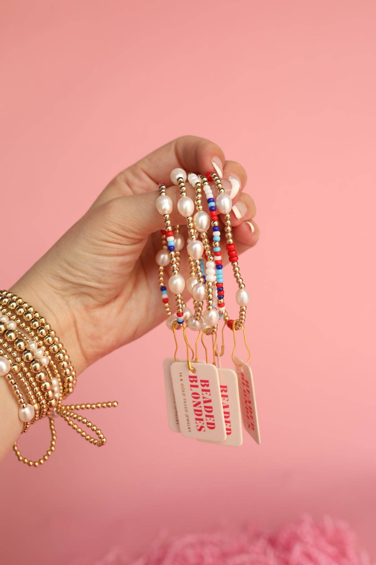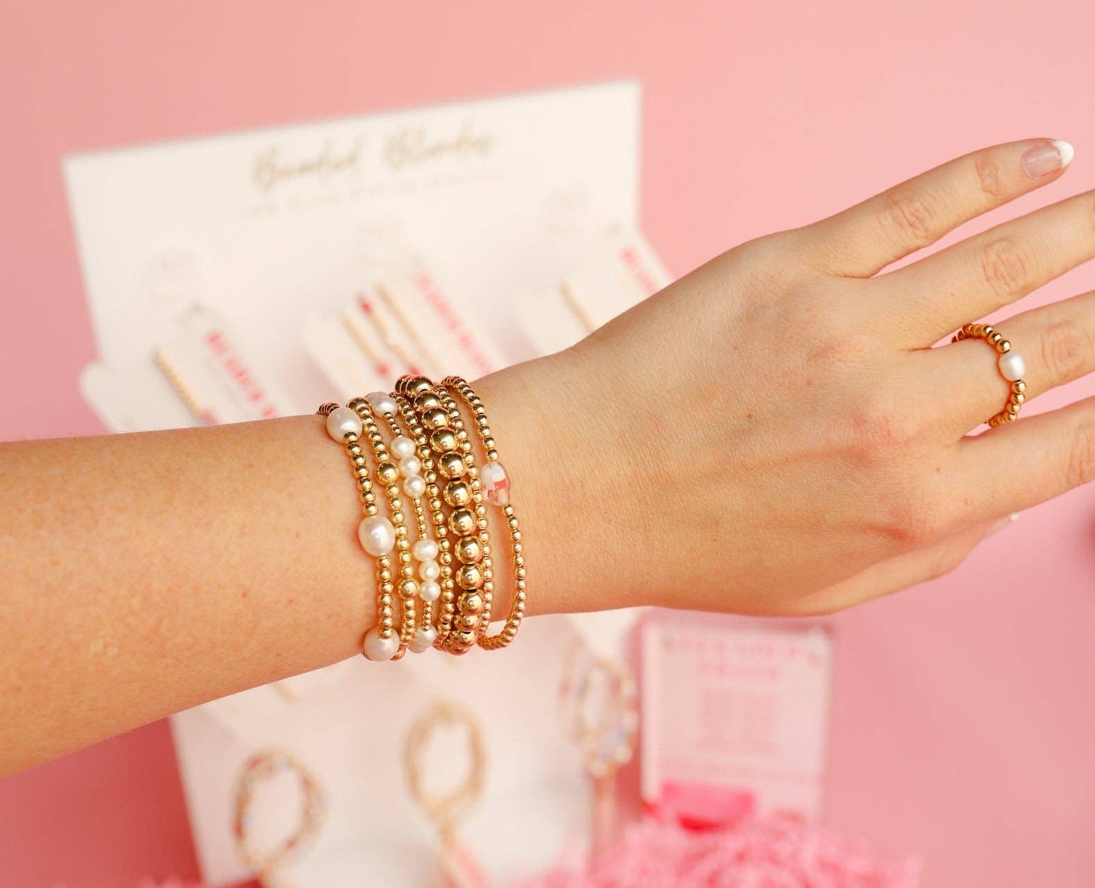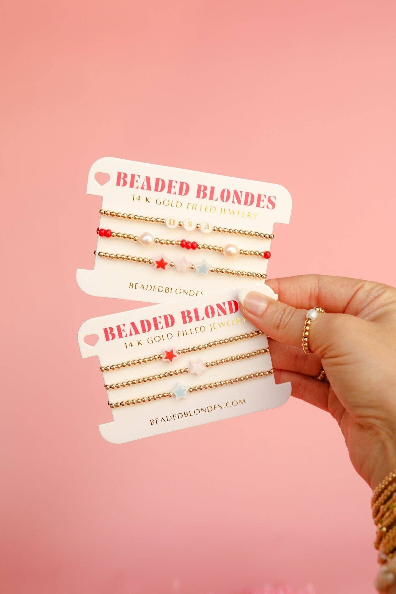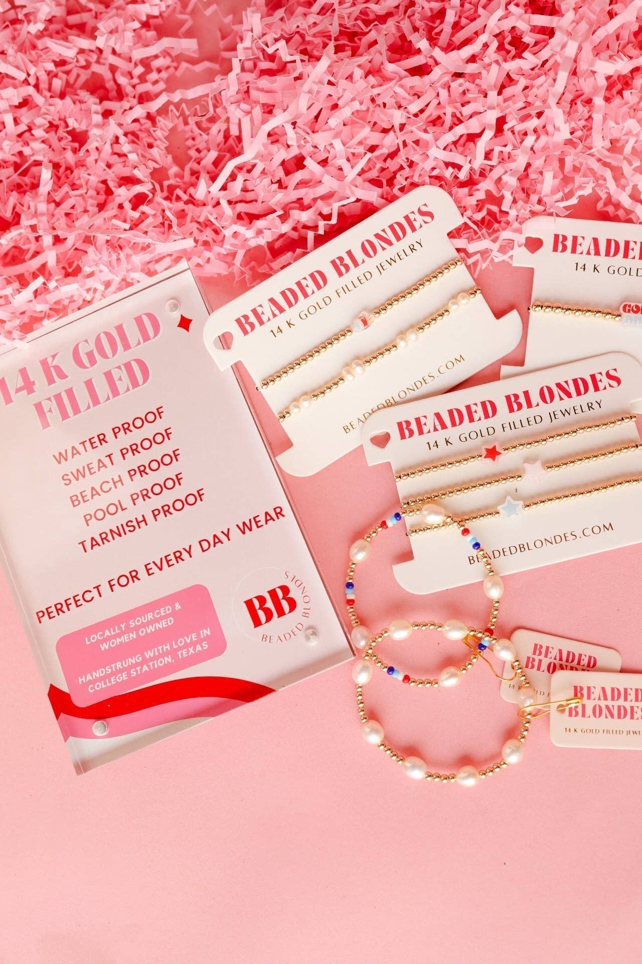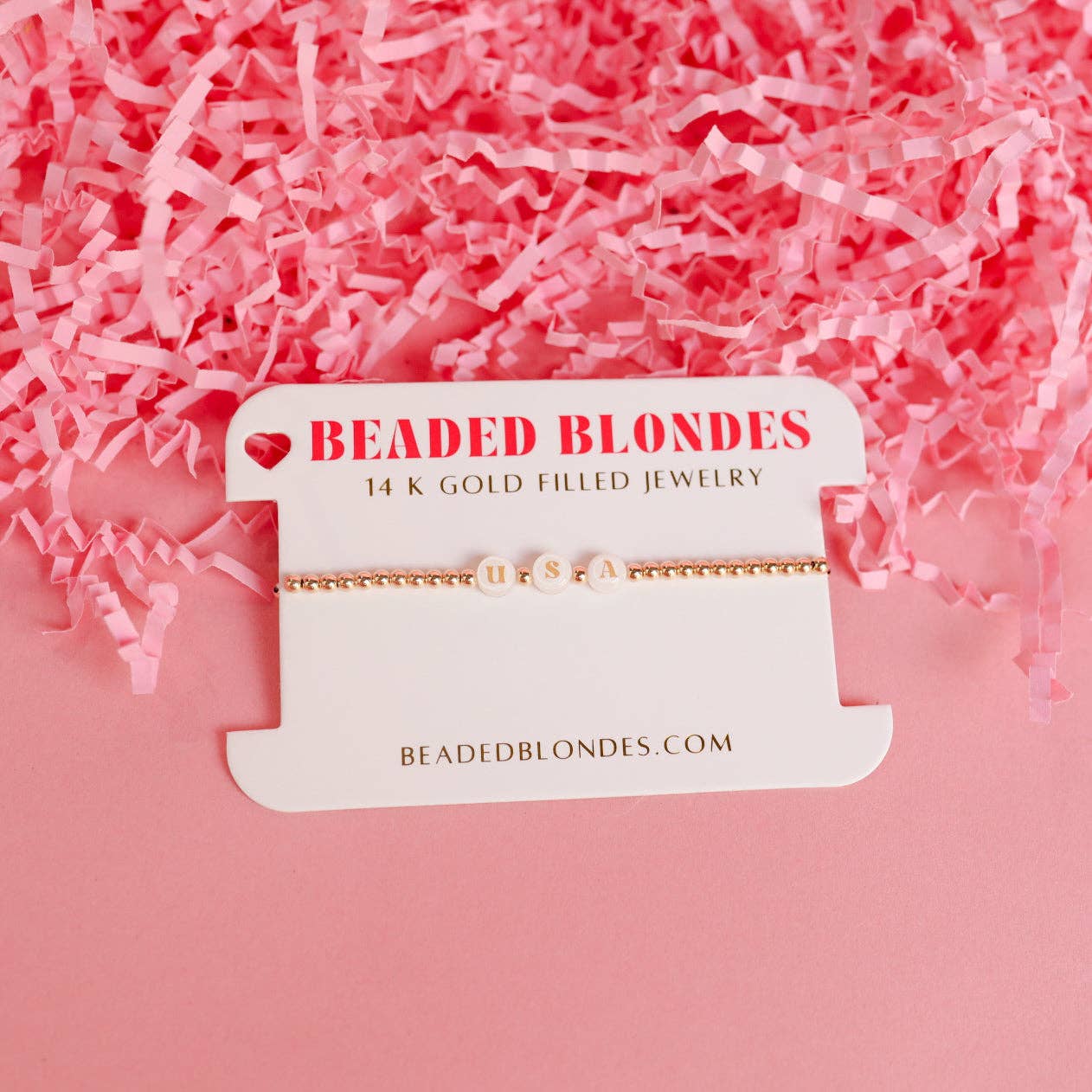 Material: 14 K gold filled beads and durable elastic string.