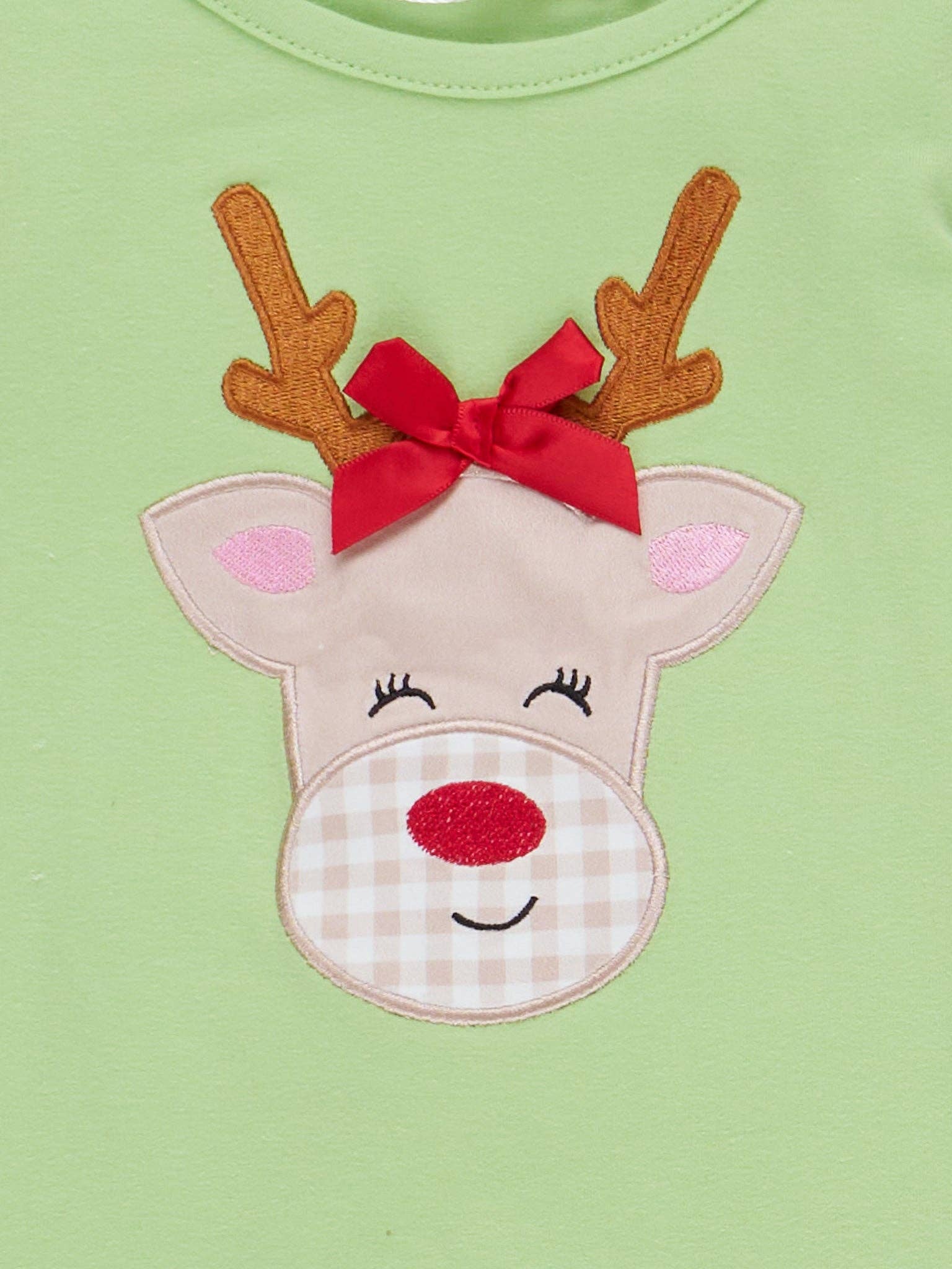 Reindeer Smile Embroidered Ruffle Outfit: M(3yrs)