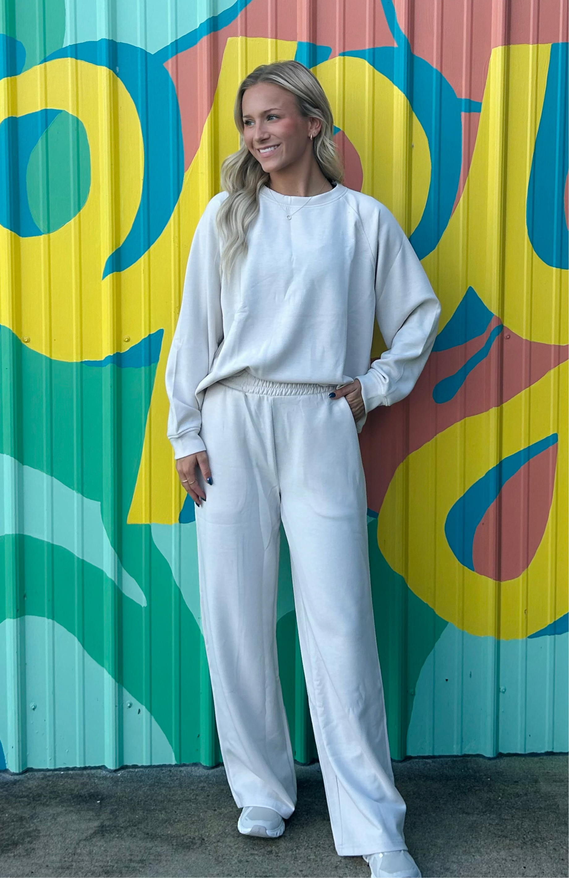 We are feeling nothing but true Fall Bliss in this set! featuring a relaxed long sleeve top, and elastic high waisted pant. This set is so soft and breathable. It offers the perfect blend of comfy vibes and effortless style!