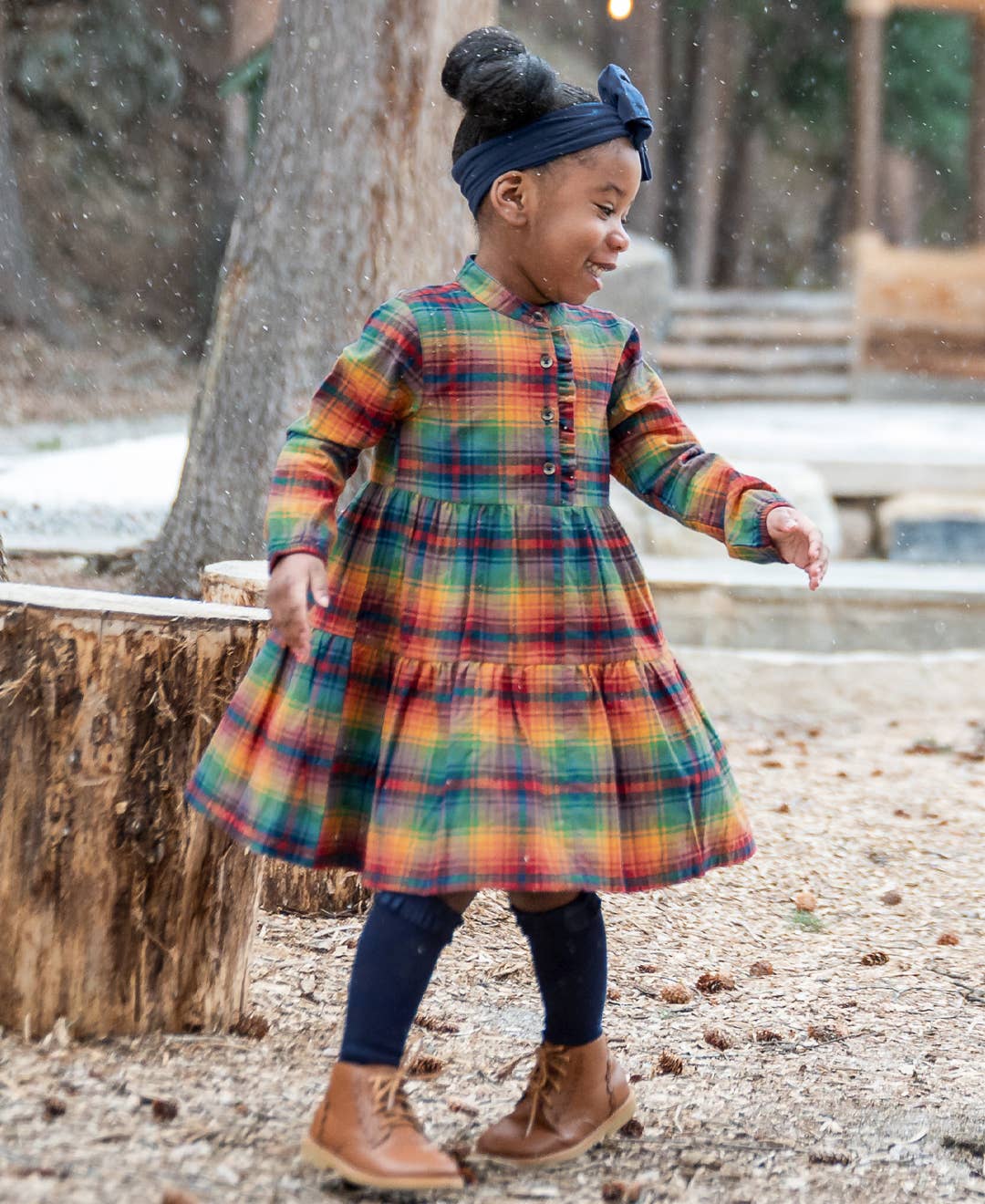Storybook Rainbow Plaid Ruffle Henley Tiered Dress 18-24 Months