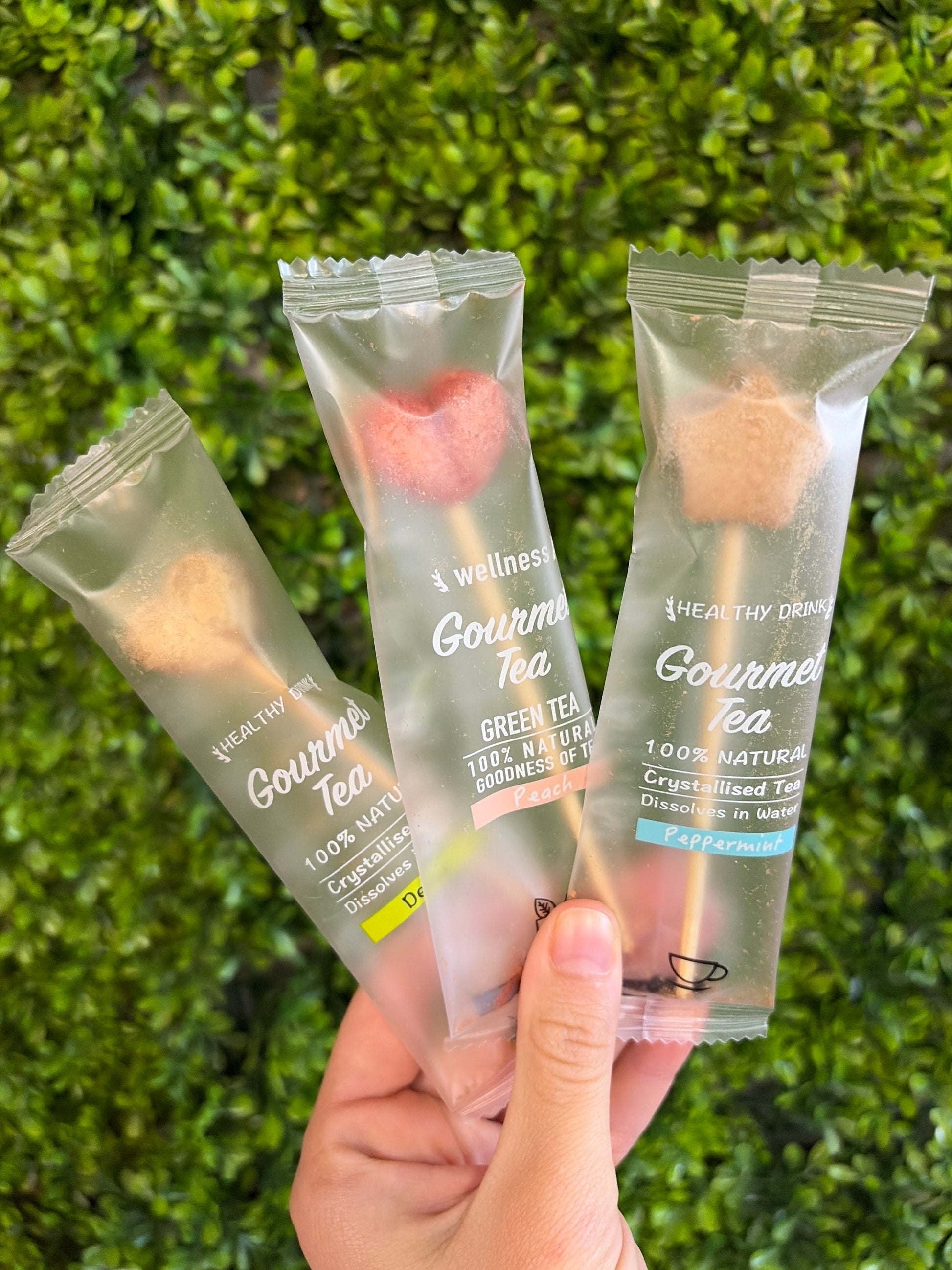 New and innovative! gourmet tea on-a-stick tea sampler with display tray. Tea-Pop is 100% Natural extract from tea leaves, fruits, plants and herbs, crystallised in a novel shape and dissolves fully in water for a gourmet tea experience. Made from 100% natural tea, fruits, plants and herbs. • Dissolves fully in hot and cold water. * Individually packed in pillow pack. Ideal as gifts, dinner parties or self indulgent. Easy, tasty, fun Tea-Pop to Enjoy!