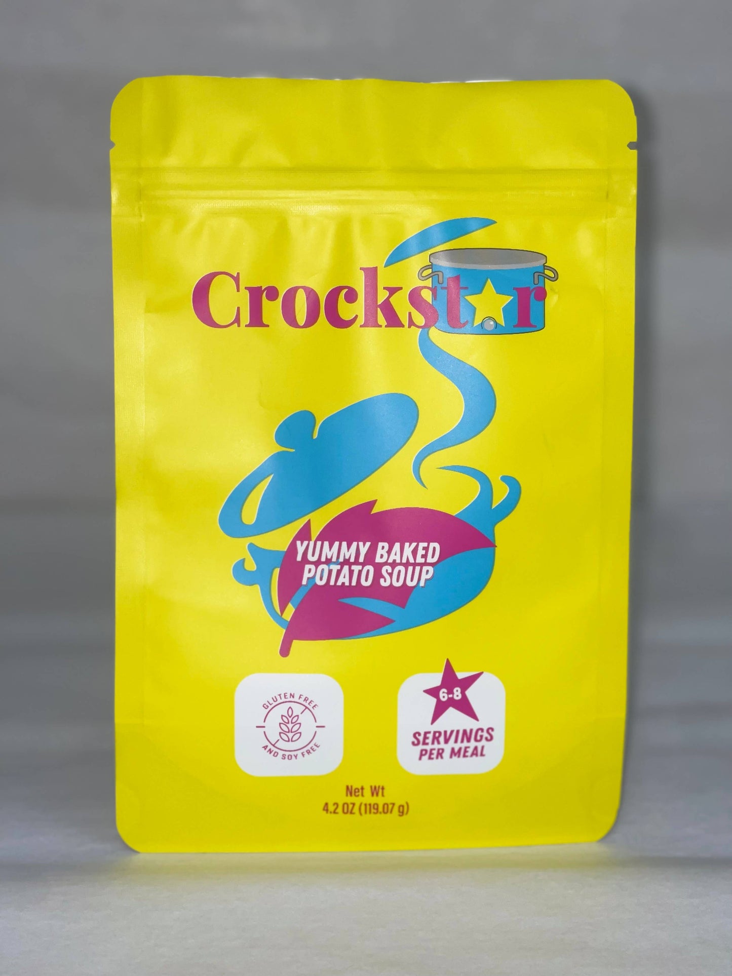 Crockstar's Yummy Baked Potato Soup is the Best & Easiest Baked Potato Soup you'll ever make! Simply add your Crockstar packet, 3-4 cups of water, 1 block of cream cheese and a package of frozen diced hash browns. When you get back home dinner will be ready!